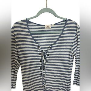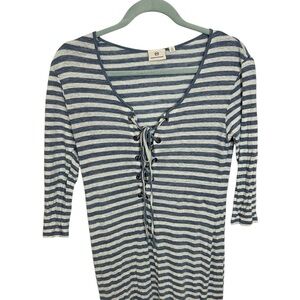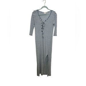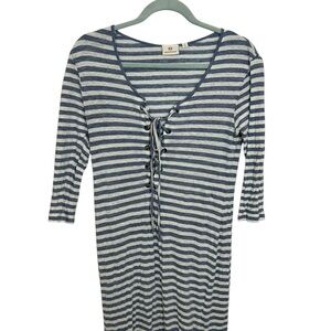 Ag Adriano Goldschmied Linen Blue Striped Lace Up Claude Maxi Dress Size XS