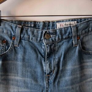 Ag Adriano Goldschmied Sexy Ex Boyfriend Slim Jeans. Tapered leg. Torn knees. General distressing. In excellent condition. No pilling, stains or damage.
