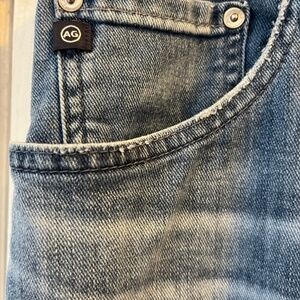 AG Adriano Goldschmied Men's The Ives Jeans. Zip front closure, five pocket construction, and light/medium wash. Size 34" x 28" (originally, pant was 34" x 34", but was hemmed to 28" in length). Close-up photos are more true to actual color. Condition: Excellent! No signs of wear and tear.