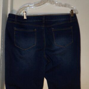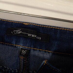 medium blue wash , boot cut , 3 pocket style with belt loops , material is 63% Cotton 27% Polyester 9% Rayon 1% Spandex , Sz 16 rise measures 10" Inseam measures 30" Waist lying flat measures 17.5" , good used condition No Issues , minor washing wear , pet friendly non smoking home