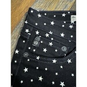 The pants come with a convenient zip and button closure, as well as pockets for added convenience. These pants are a size 25, and are suitable for regular size types. The ankle style and black color make these pants versatile for any outfit. Add a touch of stars to your wardrobe with these gorgeous AG Star Printed Black Pants.