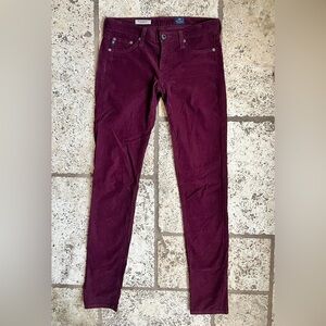 Ag skinny jeans pants size 26 corduroy, wine, burgundy, red colored