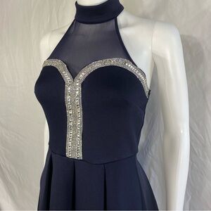 A’gaci Navy Blue Jeweled Mini Halter Dress