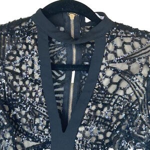 Agaci Romper Womens Med-Lg Black Sequin Net Top Long Sleeve Back Zipper