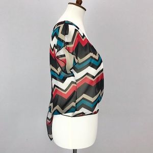 A'gaci Teal Zig Zag Chevron Chiffon Tie Back Top