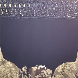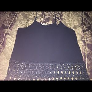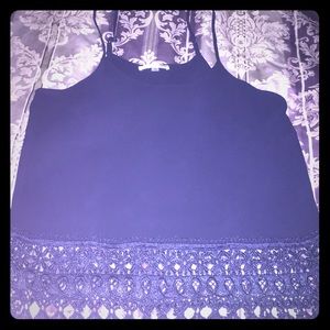 Size large I'm clean hardley worn condition size large true to size looks great with pants or capris beautiful Navy Blue Color