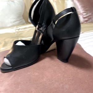 Black leather chunky heel , cool rock style summer/ spring/ fall shoes . Worn ones or twice. Heel is around 3.5 -3.5 1/4 inches. Pretty comfortable.