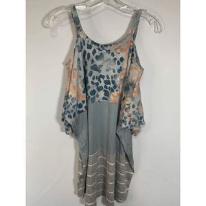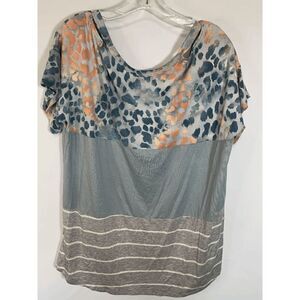 A.gain Women's Cold Shoulder Tunic Top V Neck Short Sleeve Multi Pattern Gray 3X