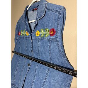 Agapo Denim Jacket Blue Embroidered Lightweight Jean Boho Cottage Casual Women L