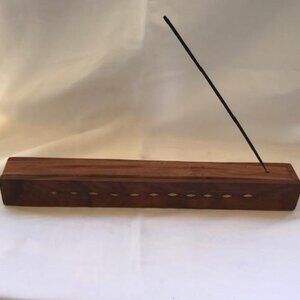Agarbatti Wood Handmade Coffin Box Incense Stick Burner Holder Gold Inlay 12"