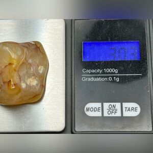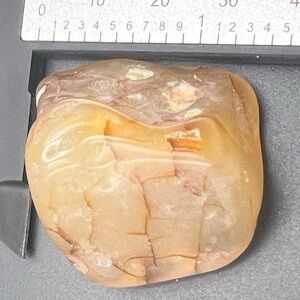 Beautiful polished yellow stone with natural patterns. Perfect for decor or collection.