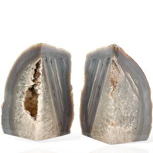 These natural agate bookends from Brazil are more than just functional pieces; they are mindful gift ideas for book lovers and crystal collectors alike. They offer durability and stability on any surface. Each set is unique, carved to perfection to highlight the natural beauty of agate gemstones, which are known for their extraordinary stripes of vivid color.