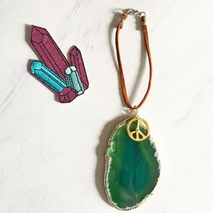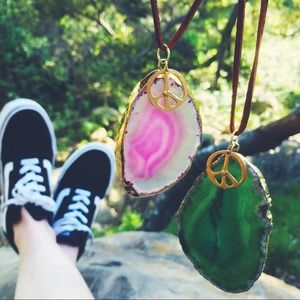Pink or Green Agate Crystal hung on suede . Take a crystal along on your road trips .