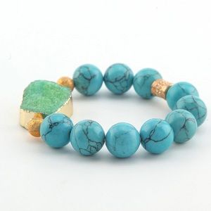 Beautiful turquoise beads with natural agate druzy stone. Perfect gift for the holiday!