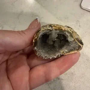 Beautiful agate geode with sparkling crystal interior. Perfect for collectors or home decor. 1 1/2 inches