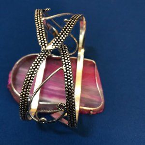 All handmade Agate Geode Slice 925 Silver Plated Huge Adjustable Bracelet.