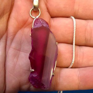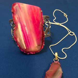 Agate Geode Slice 925 Silver Plated Huge Adjustable Bracelet + Necklace.