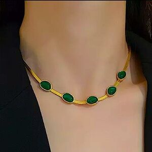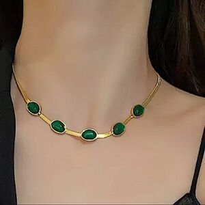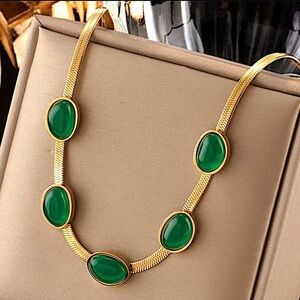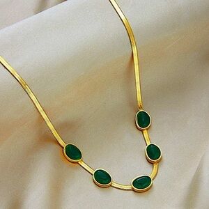 Agate Gold Plated Emerald Snake Herringbone Charm Pendant Necklace