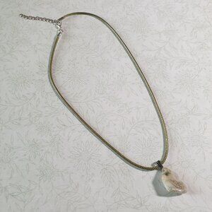 This necklace features a polished agate pendant, highlighting natural patterns and hues. Its adjustable gold-tone chain ensures a comfortable fit for versatile wear.