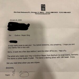 Returns not accepted, since I will have to psych myself up to post this off to you. The silver band shows wear appropriate to its age (see photos), but nothing that distracts from the ring’s overall gorgeous-ness. The stone is as new, drop-dead beautiful and it’s a beautiful object indeed—artwork, actually.