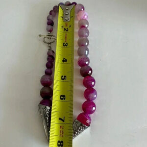 Agate Womens Silver Plated Round Beaded Necklace Multicolor Size 8"