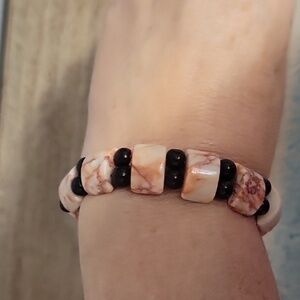 This elegant bracelet features a stunning combination of Agate and black Onyx beads, perfect for any occasion. The unique design adds a touch of sophistication to your jewelry collection.