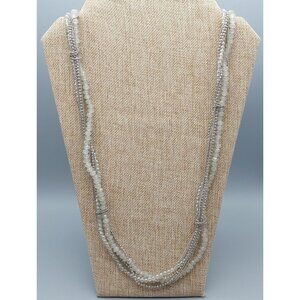 Agatha Silver Tone Chain & Crystal Glass Bead Multi Media Strand Necklace 32"
