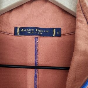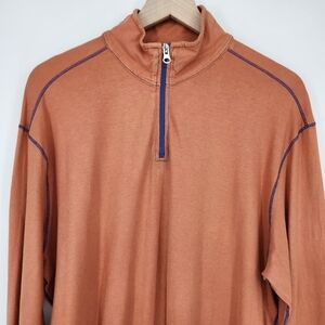 Agave Denim Mens 1/4 Zip Pullover Top Size XL Orange Blue Mock Neck Made In USA