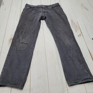 Cool Agave "Pragmatist" classic straight leg jeans in a charcoal wash! In sturdy condition but they do have lots of staining on the front of the legs that wouldnt wash out. Size 36, inseam measures about 32.5"