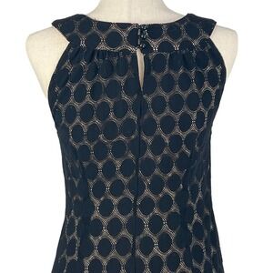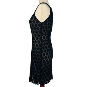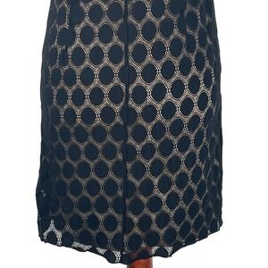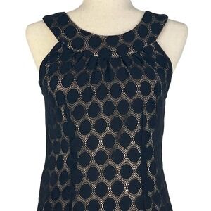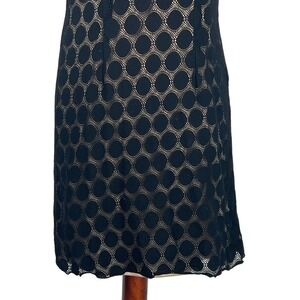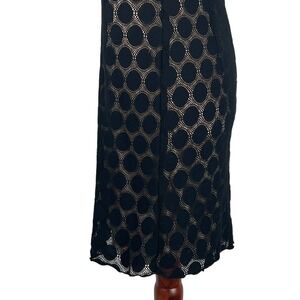 Agb SLEEVELESS POLKA DOT LACE OVERLAY ROUND NECK SHIFT DRESS BLACK/BEIGE 16 EUC