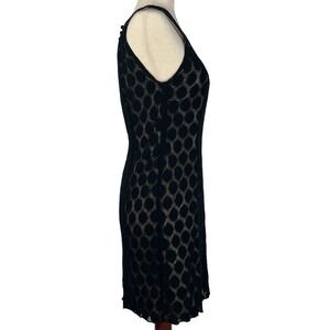 AGB SLEEVELESS POLKA DOT LACE OVERLAY ROUND NECK SHIFT DRESS BLACK/BEIGE 16 EUC
