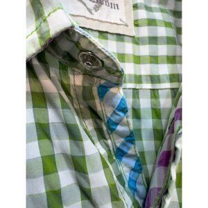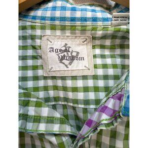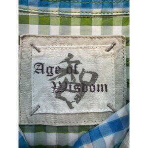 Age Of Wisdom Mens Green & Blue Checkered Long-Sleeve Button-Down Shirt