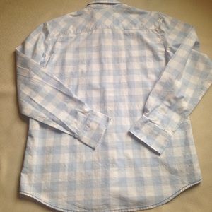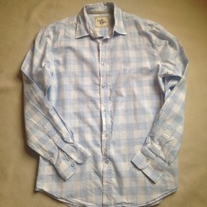 Great Age of Wisdom mens' casual shirt!! Really nice light blue and white check pattern ....great jute accents at neck and button line. Made of 100% cotton....great summer time shirt!!! 🌿