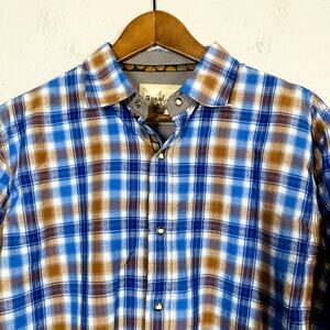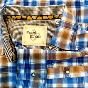Age of Wisdom Pearl Snap Button Up Shirt Long Sleeve Blue Tan - L