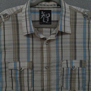 Age of Wisdom Shirt Mens XXL Multicolor Plaid Short Sleeve Lightweight Button Up