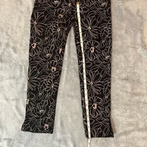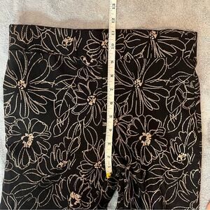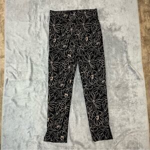 Agenda Petite Black Tan Floral Slim Fit Work Pants Ankle Slit Pants Size Small