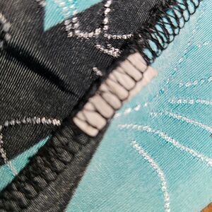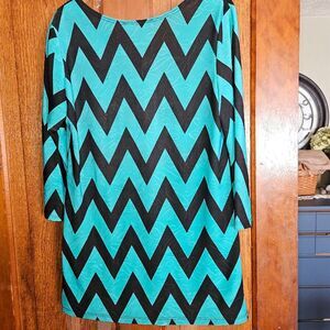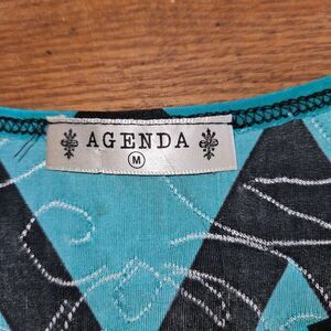 Description: Agenda women’s top in size M, featuring a chevron jacquard pattern in vivid hues and stretchy 3/4 sleeves.