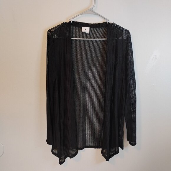 Agenda black stretchy sheer mesh net open front sweater lightweight . Whimsigoth style could also be used as a bathing suit cover up for summer or can layer over tanks or shirts, is versatile.