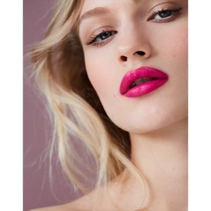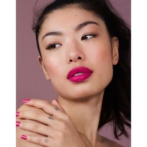 Hot pink lipstick. Infused with wild mango butter for restoration and protection. Smooth full-colour release and vibrant matte finish.