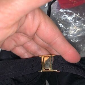 Chic black bikini top. Strapless design with halter tie. Sleek and stylish. new wirh tags