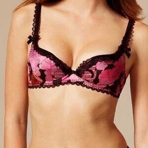 Agent Provocateur June Black and Pink Floral Silk Bra SIZE 36DD