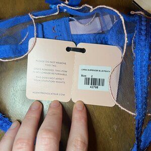 Agent Provocateur Lorna Garter Belt in Blue/Peach, Size 2, NWT