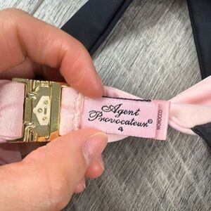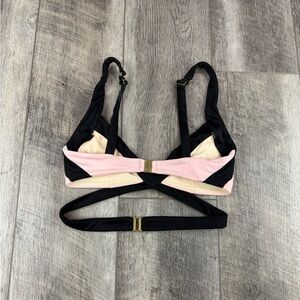 Brand Size 4 (us size 8). Lightly worn but in good condition. Top only. Clasps in the back. Triangle shape cups. no padding in the cups.