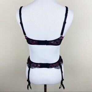 Agent Provocateur Purple Black Bra Garter Set 32B