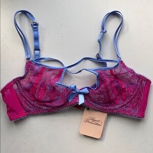 Crafted from delicate floral lace, the Darya bra is a staple addition to any underwear drawer. With a delicate bow appliqué and peep-hole cut-outs for a seductive flash of skin.