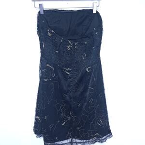 Aggie Sparkle Gold Black Lace Strapless Short Dress Large