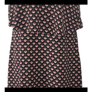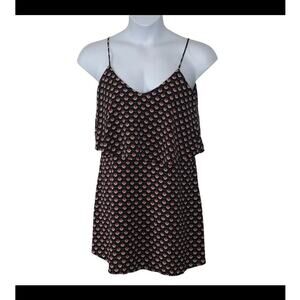 Effortlessly chic and vacation-ready, this Aggie Tiered Sundress in size Medium features a playful tiered silhouette with delicate spaghetti straps and a breezy ruffle overlay across the bust. The eye-catching peacock fan print in pink and cream pops against a deep navy blue (or black, depending on lighting) background. Lightweight and flowy, made from 100% polyester for perfect warm-weather wear.