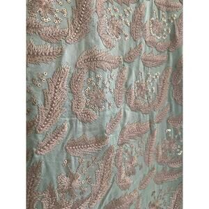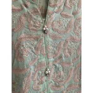 Agha Noor Embroidered Pearl Accents Chiffon Light Green Pistachio Top Sz Medium
