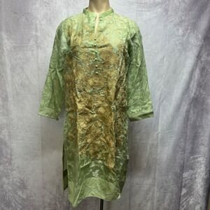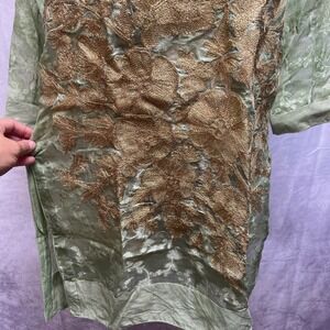 Agha Noor Kurta Tunic Womens S Embroidered Gold Lime Green Gauzy Pakistani