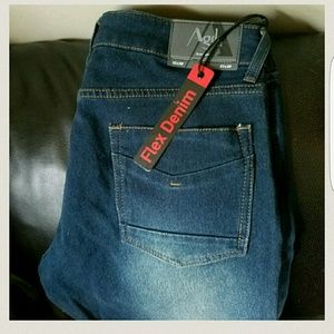 Agile jeans feature flex denim material for comfort, five pocket styling, and a straight leg. 98% Cotton, 2% Spandex. Machine wash. Tumble dry.